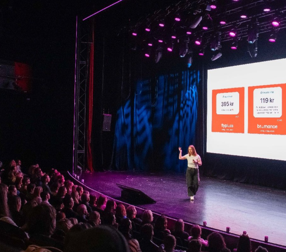 «Jeg er her for å snakke om fuck-ups og språk, sier Ida Nicoline Glosimot, som jobber med kommunikasjon i Vipps og kaller seg skrivejente. Glosimots foredrag var dagens definitive høydepunkt, og Vipps ble på slutten av dagen kåret til selskapet i Norge med best omdømme.»